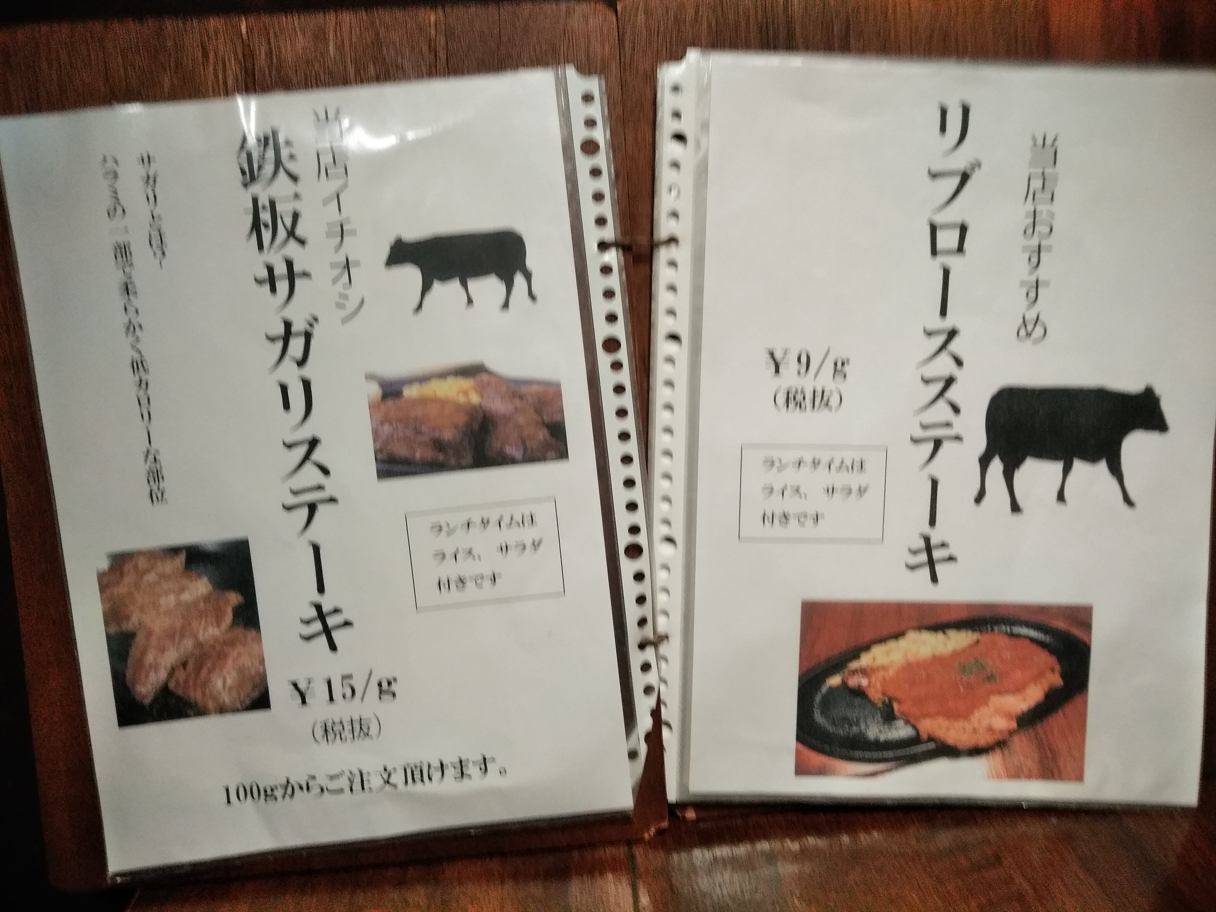 さがりステーキ1g15円を150g注文