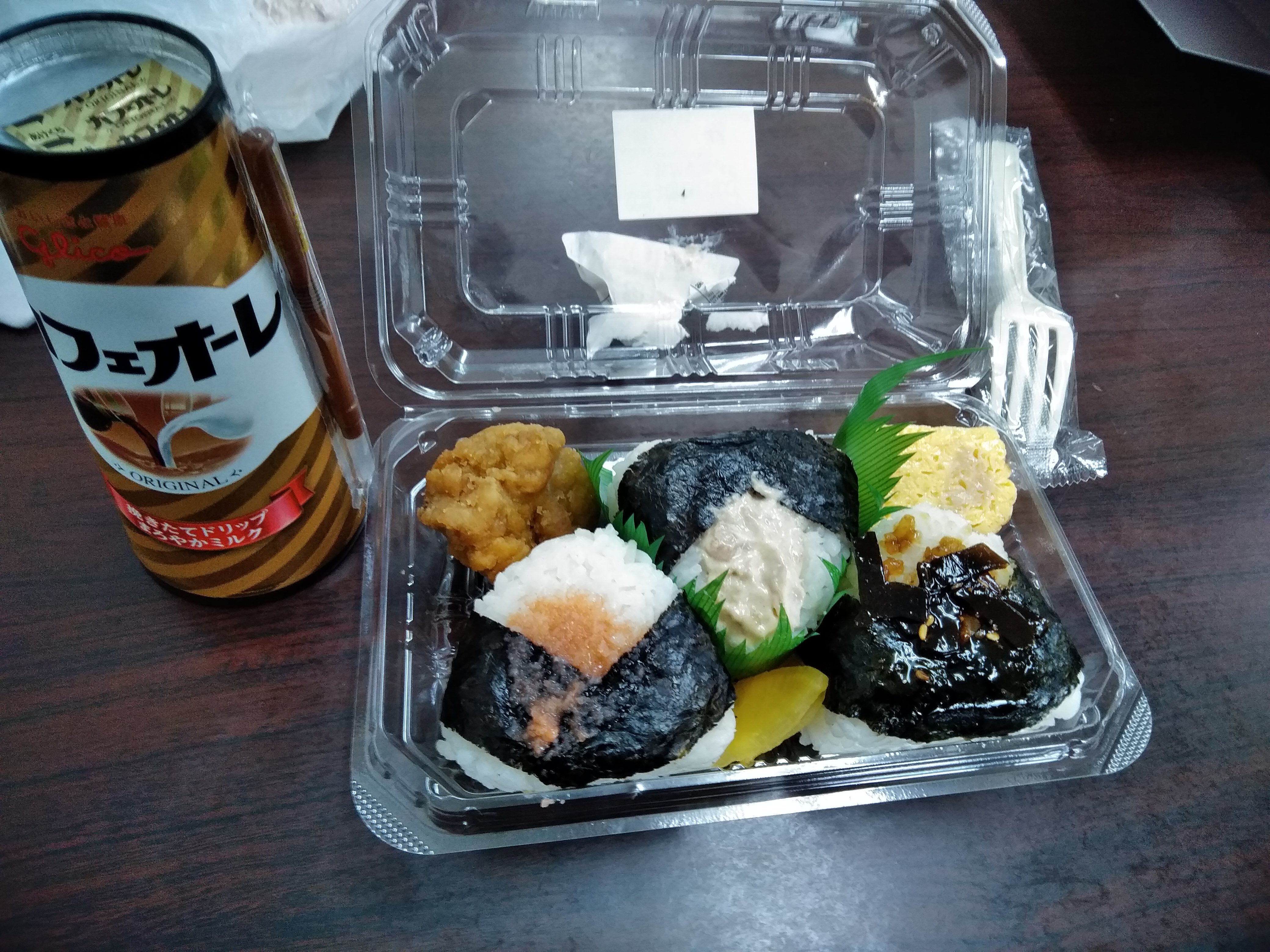 コンビニで買って行ったおにぎりを食べた