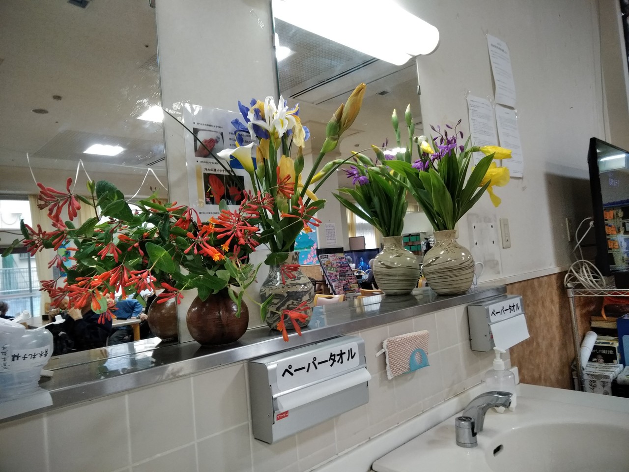 昼飯後、元生け花の先生のおばちゃんが花を活けてた