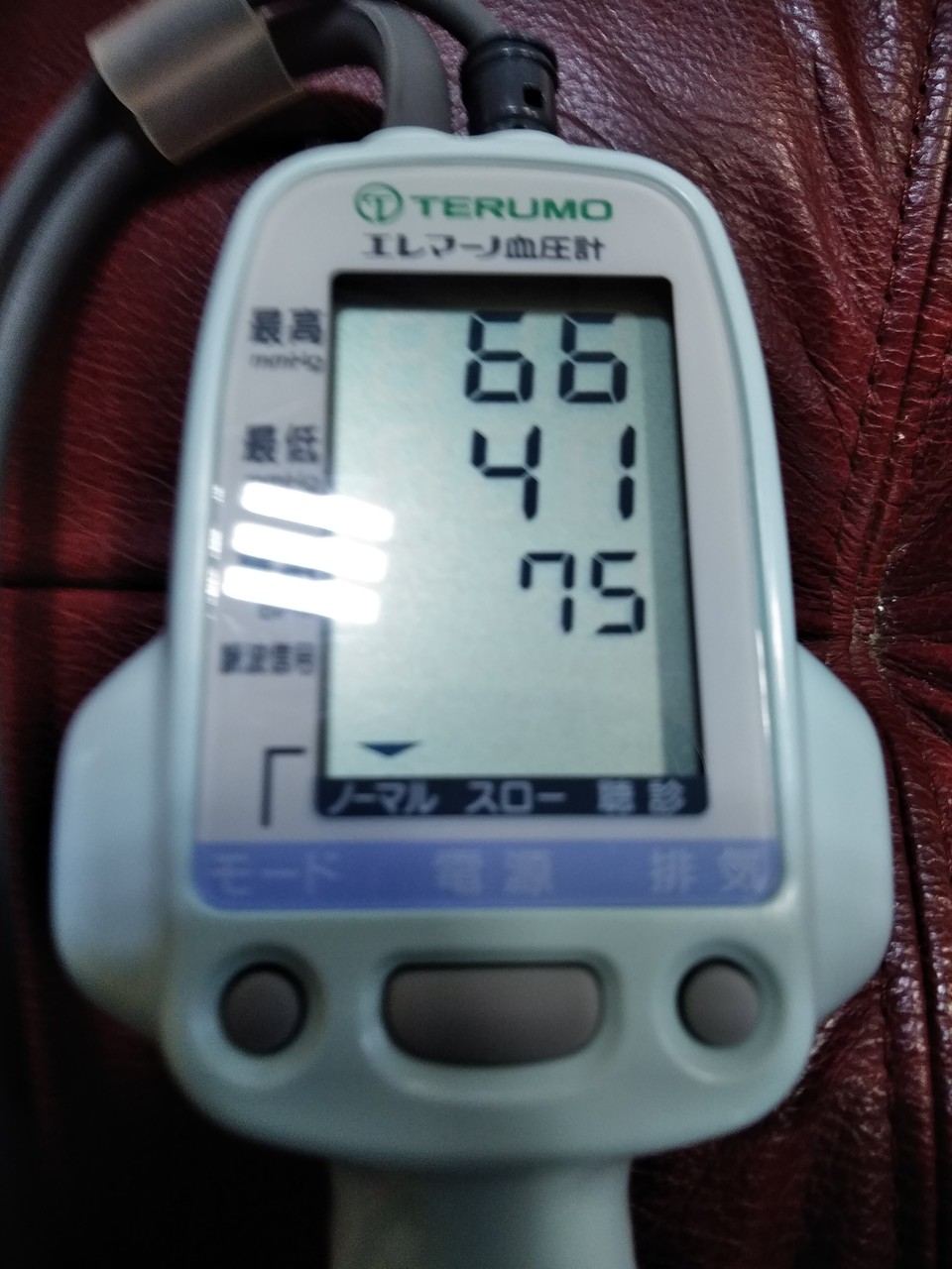 ケケアセンターに到着すぐに、血圧測定したら66